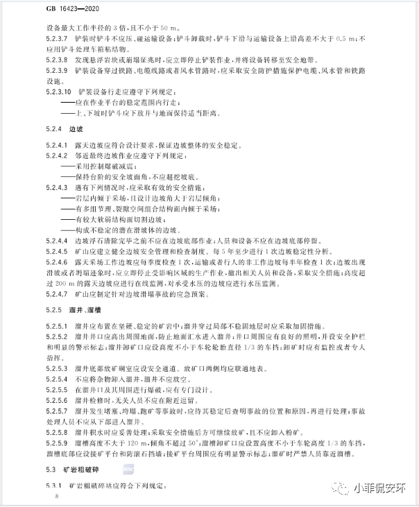GB16423-2020《金屬非金屬礦山安全規(guī)程》,2021年9月1日起實(shí)施!