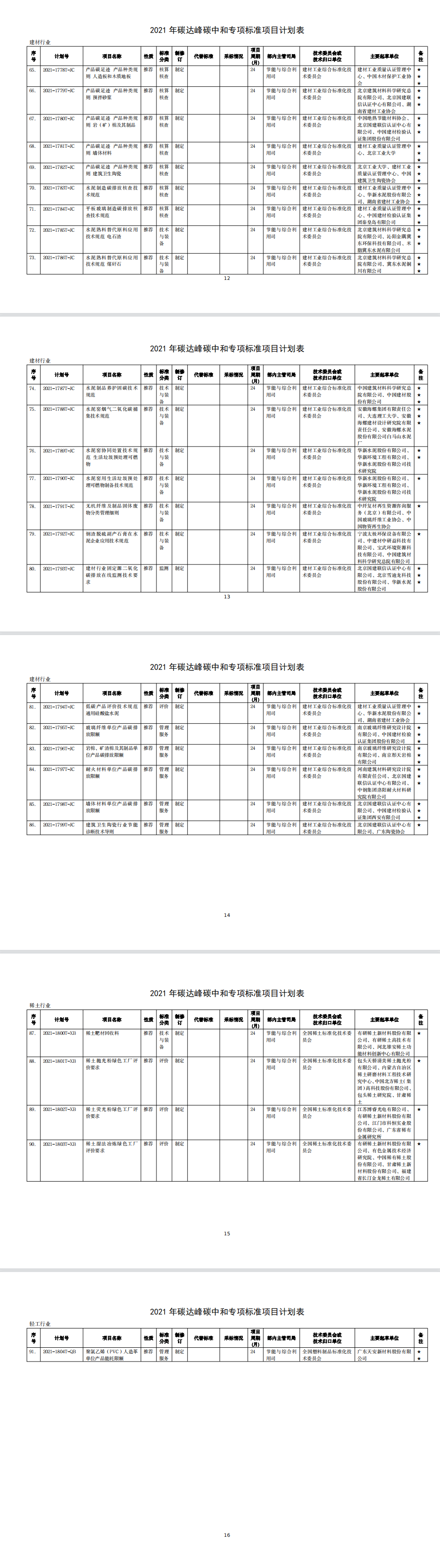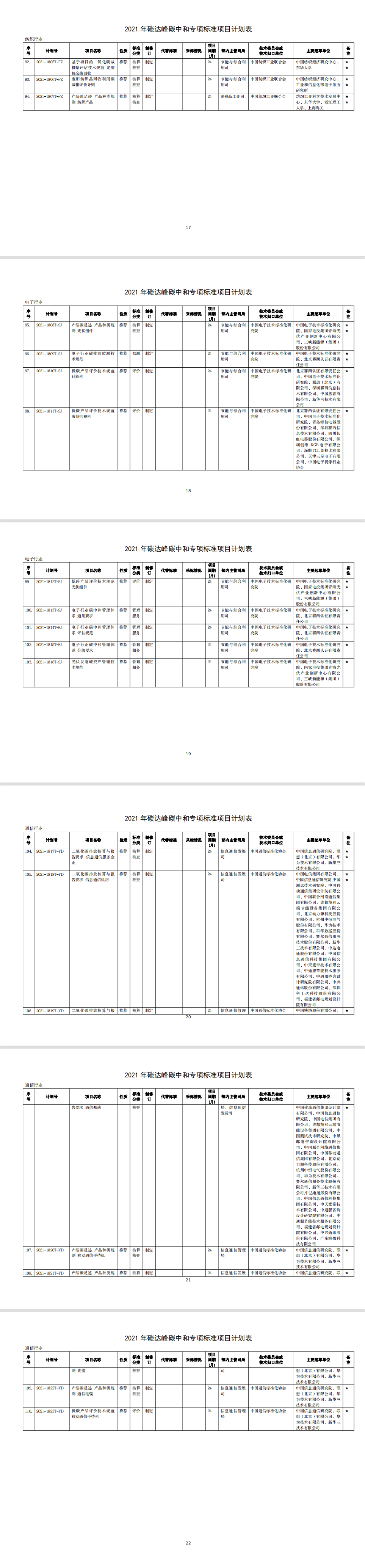 為發(fā)揮標(biāo)準(zhǔn)在推進(jìn)工業(yè)領(lǐng)域碳達(dá)峰碳中和工作的引領(lǐng)和規(guī)范作用,我部編制完成了2021年碳達(dá)峰碳中和專項行業(yè)標(biāo)準(zhǔn)制修訂項目計劃。現(xiàn)印發(fā)給你們,請認(rèn)真組織落實。有關(guān)事項通知如下: