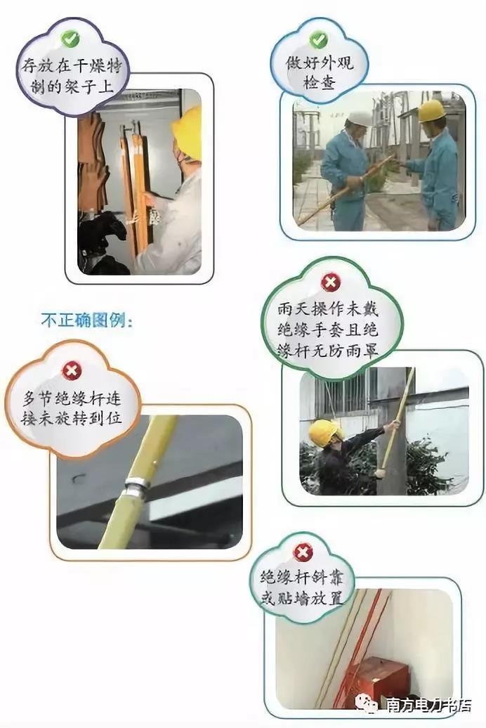(3)操作人應(yīng)選擇合適站立位置,與相臨帶電體保持足夠的安全距離,注意防止絕緣桿被人體或設(shè)備短接,以保持有效的絕緣長度。