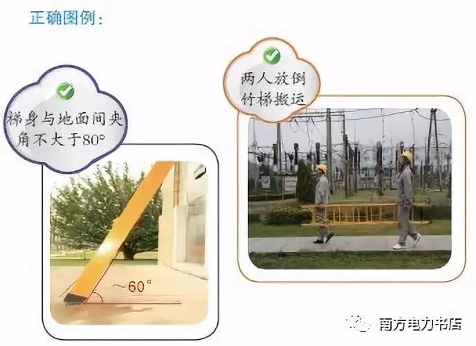 (6)在部分停電或不停電的作業(yè)環(huán)境下,應(yīng)使用絕緣梯。在帶電設(shè)備區(qū)域中,距離運行設(shè)備較近時,嚴禁使用金屬梯。在戶外變電站和高壓室內(nèi)搬動梯子、管子等長物,應(yīng)兩人放倒搬運,并與帶電部分保持足夠的安全距離,以免人身觸電氣設(shè)備發(fā)生事故。