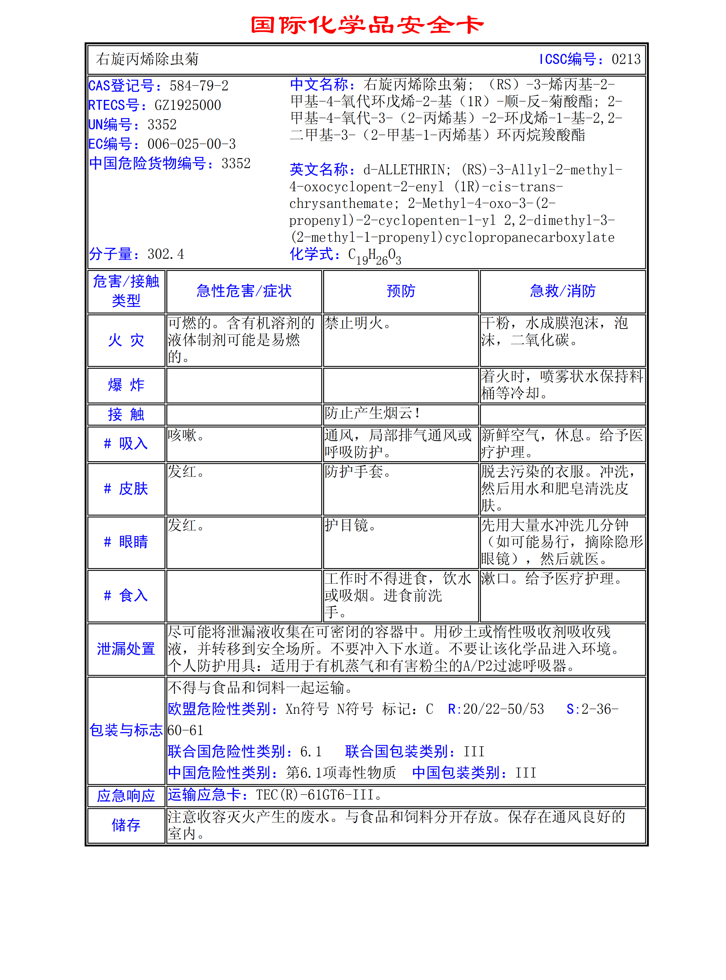 丙烯除蟲菊MSDS