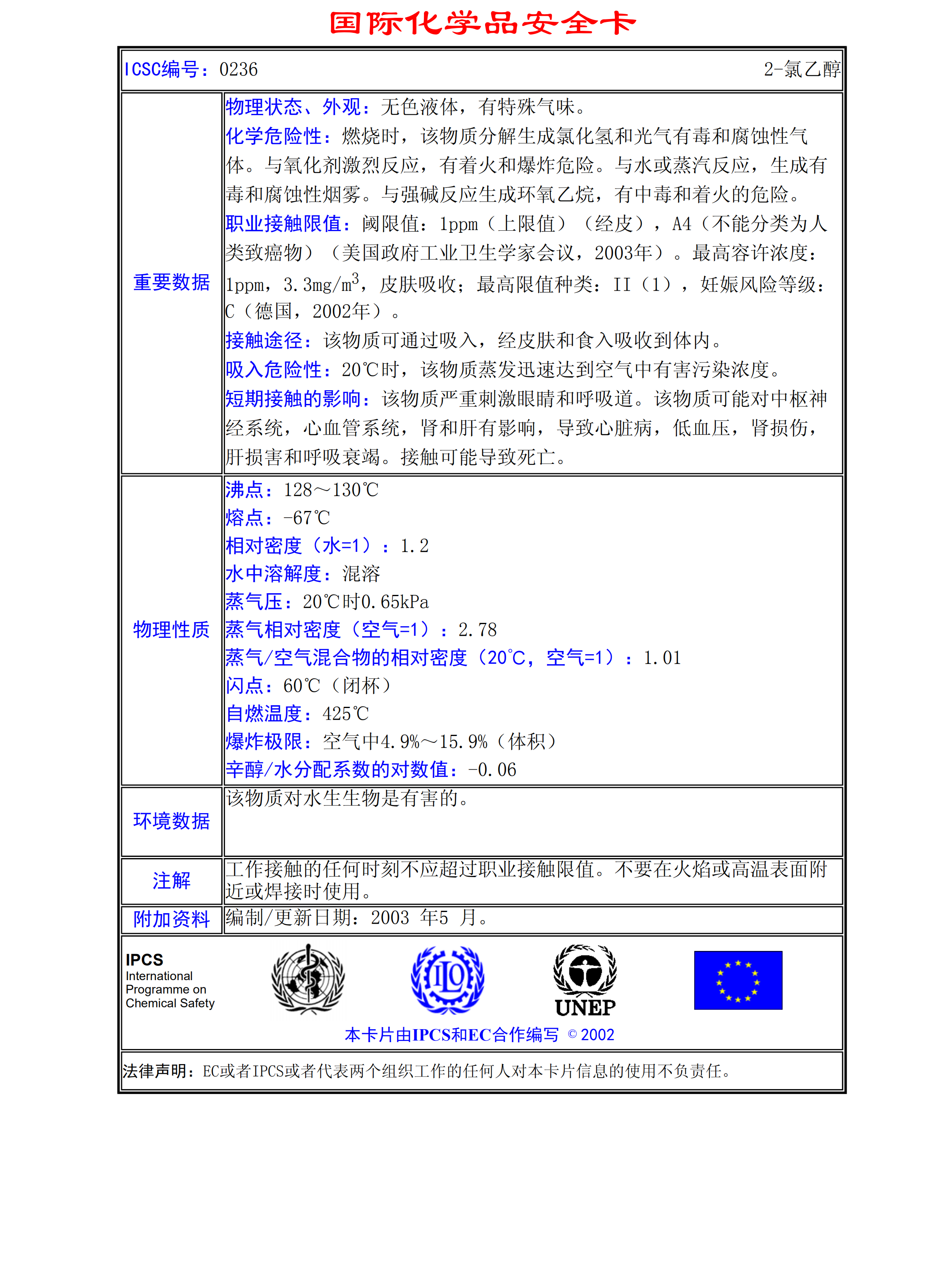 2-氯乙醇MSDS