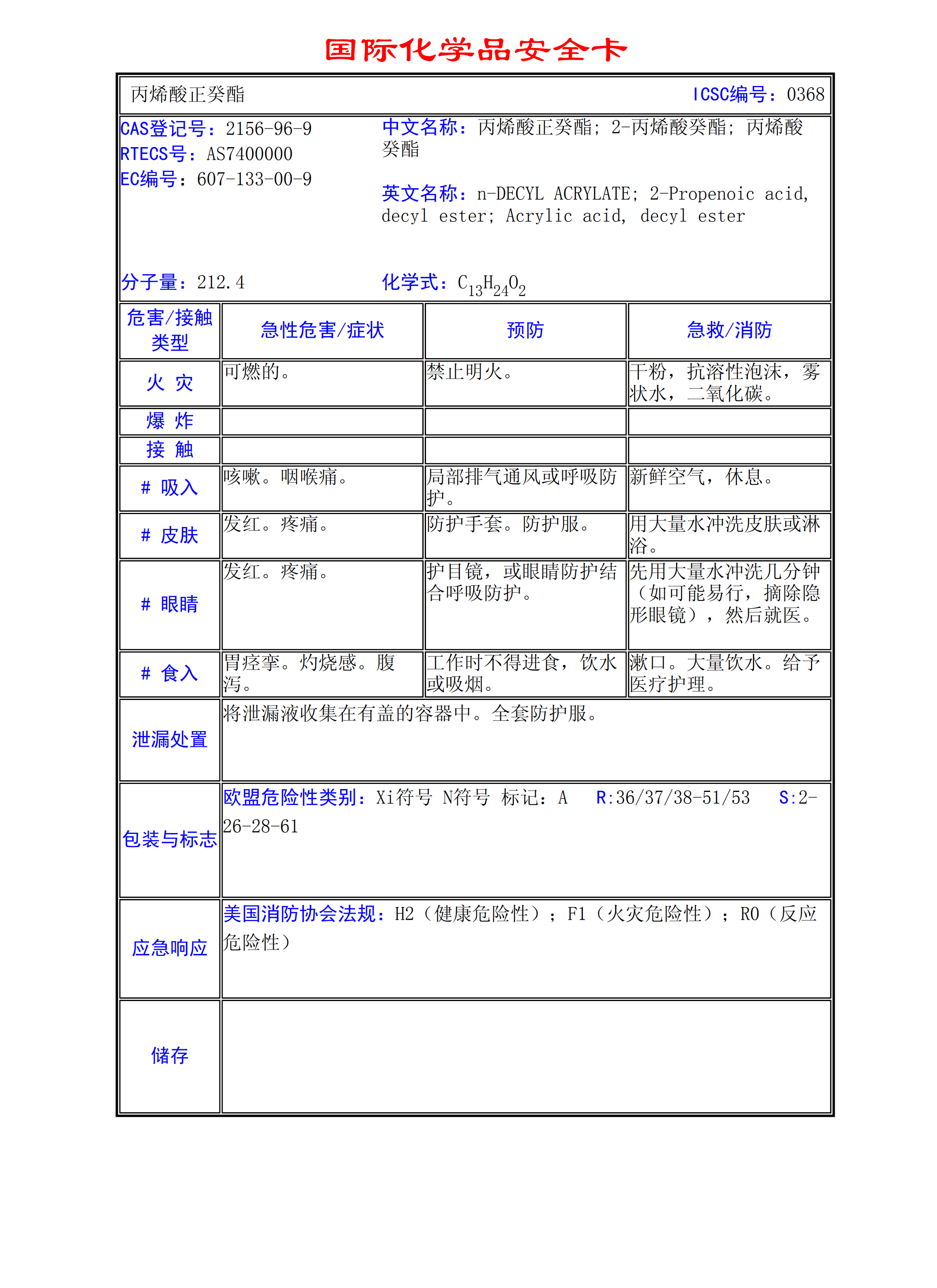 丙烯酸正癸酯MSDS