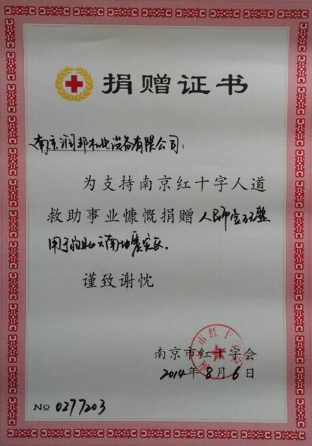 南京潤邦機電設備有限公司為魯甸災區(qū)捐款1萬元 2014-08-07